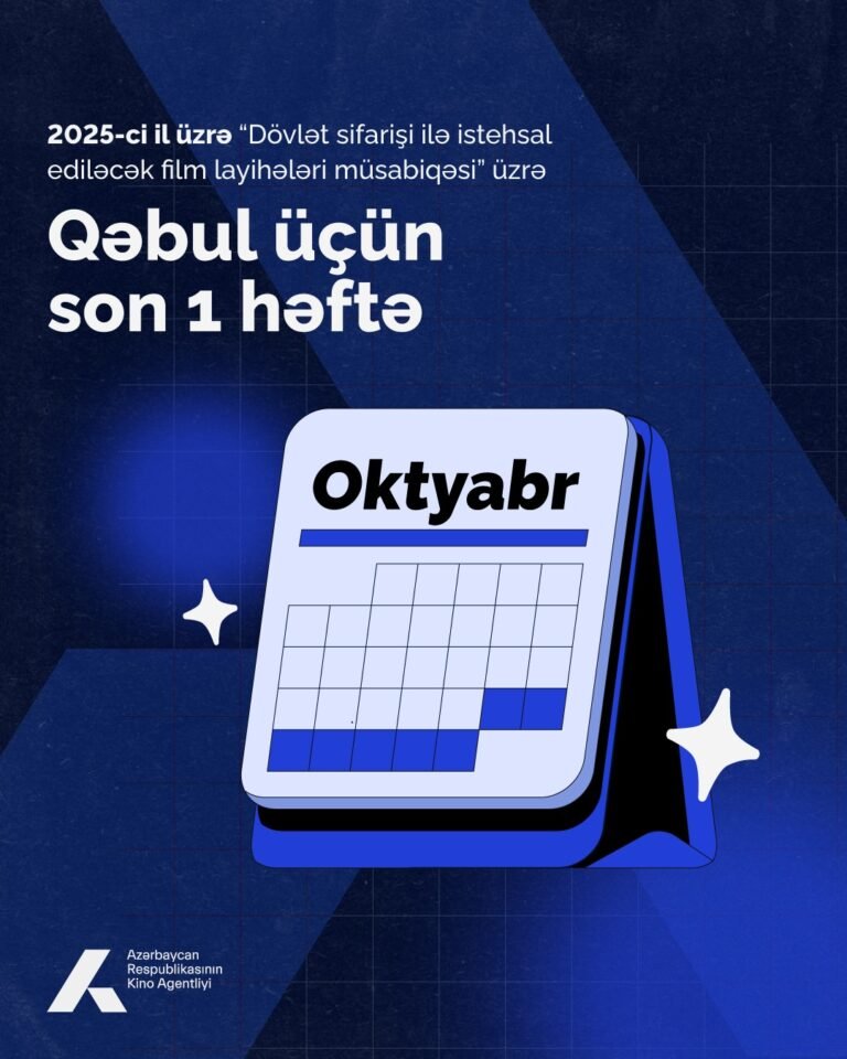 Mədəniyyət Nazirliyi tabeliyində fəaliyyət göstərən Azərbaycan Respublikasının Kino Agentliyinin elan etdiyi 2025-ci il üzrə “Dövlət sifarişi ilə istehsal ediləcək film layihələri müsabiqəsi’’nə müraciətlərin qəbulu üçün son 1 həftə qaldı.
